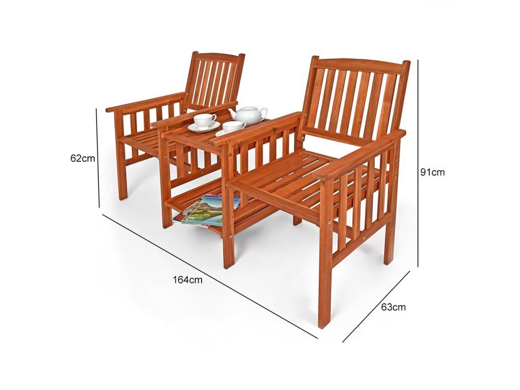Banca de grădină cu măsuță integrată este locul ideal pentru relaxare în grădină sau pe balcon. Designul său elegant și fibra naturală a lemnului atrag imediat atenția oriunde o așezați. Această bancă din lemn este potrivită pentru utilizare atât la interior, cât și la exterior. Lemnul de acacia, rezistent la intemperii, face banca ideală pentru toate spațiile exterioare. Șezutul pentru două persoane oferă spațiu generos și două niveluri de depozitare pentru băuturi sau gustări. Cu cotiere pe ambele părți, spătar înalt și înălțime confortabilă a șezutului, banca vă asigură confort maxim. Pentru întreținere ușoară, este suficient să ștergeți banca cu o cârpă umedă. Pentru a păstra culoarea intensă și durabilitatea lemnului, recomandăm tratarea cu ulei special pentru mobilier de grădină.