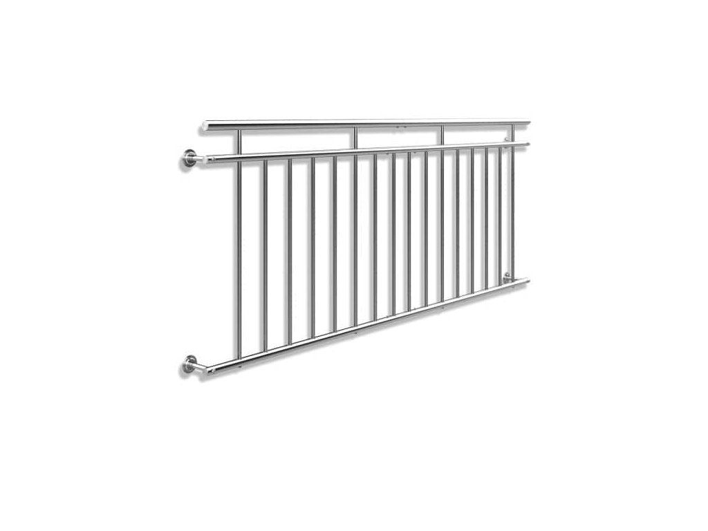 Barele elegante din oțel inoxidabil sunt mai bune, dar li se adaugă o noțiune, ceea ce apreciază în special copiii, persoanele în vârstă sau animalele. Barele sunt distanțate la 11 cm. Balustradele și capetele țevilor sunt închise.