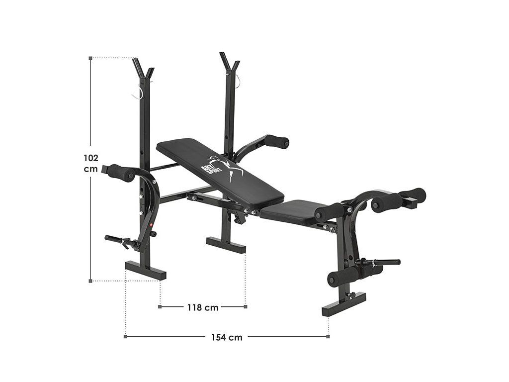 Banca de fitness multifuncțională Profi Gym 1000 cu suport pentru gantere, fluture și picior ondulat este un plus ideal pentru sala de gimnastică de acasă. Banca de antrenament pliabilă este ideală pentru exercițiilize în zona pieptului, crunch-urile picioarelor și capacitatea de a sta sau de a susține banca cu gantere. Începătorii și avansații pot folosi banca oblică pentru a întări eficient mușchii și pentru a-și modela corpul. Fie că este vorba de antrenament de forță, fitness sau exerciții fizice. După antrenament, puteți coborî rapid în câțiva pași simpli. Banca de fitness are un cadru patrulater stabil din tuburi de oțel. Construcția cu o grosime de 50 x 50 mm este foarte durabilă și asigură o poziție sigură în timpul antrenamentului. Banca de fitness este echipată cu o tavă de barilă atât de solidă. Suportul cu grosimea de 4 cm este reglabil în 4 direcții. Prin urmare, banca de antrenament poate fi utilizată atât ca bancă dreaptă, cât și ca bancă înclinată. Scaunul și spătarul sunt confecționate din tapițerie moale și piele artificială, care este blândă pe piele.