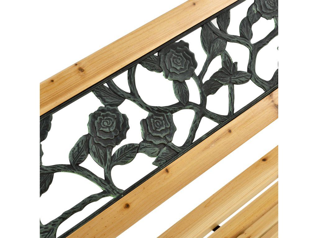 Cu banca de grădină Venezia arată grădina ta ca din poveste! Decorul frumos și elementul exterior din plastic care se ridică în partea din spate, dau băncii un alt aspect. Este realizat din lemn de aspen lăcuit și panouri laterale din fontă cu efect de patină. Datorită materialelor robuste, care sunt rezistente la influențele de poluare, este ideal pentru exterior. Pe scaunele de 122 cm lungime și 54 cm adâncime puteți conta pe 2 locuri. Cotierele practice vă oferă un plus de confort. Din punct de vedere vizual, este potrivită pentru o casă de grădină și pentru a vă bucura de aer liber. Datorită cadrului din lemn de 18 mm grosime și fontei robuste, puteți sta banca pe timp de iarnă și vreme. Acoperirea protejează lemnul de efectele negative, cum ar fi clima nefavorabilă. Picioarele sunt conectate la tijele de legătură ale scaunului, ceea ce asigură o stabilitate și durabilitate suplimentară.