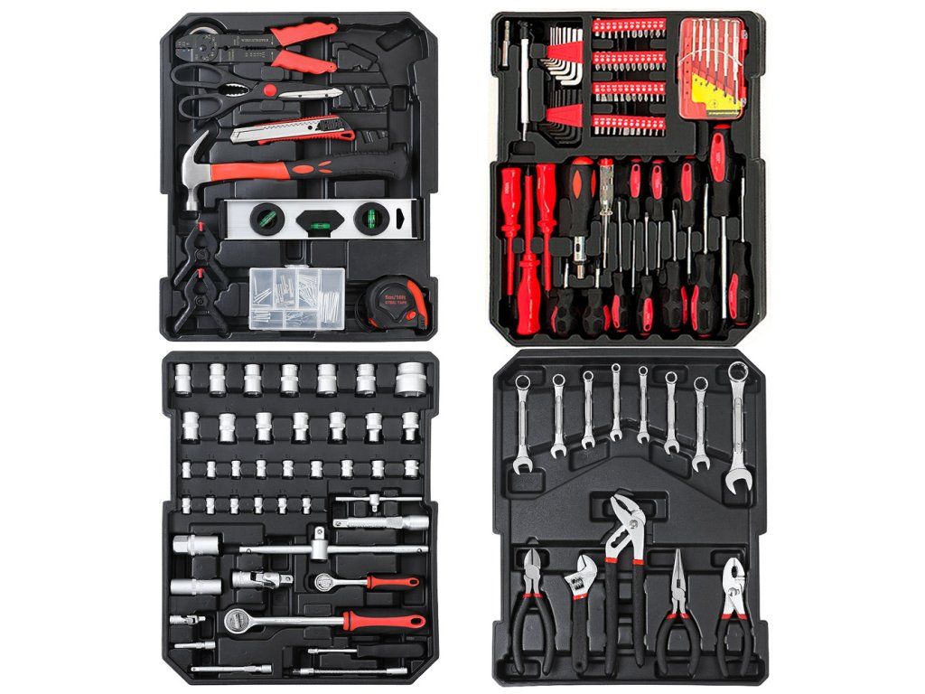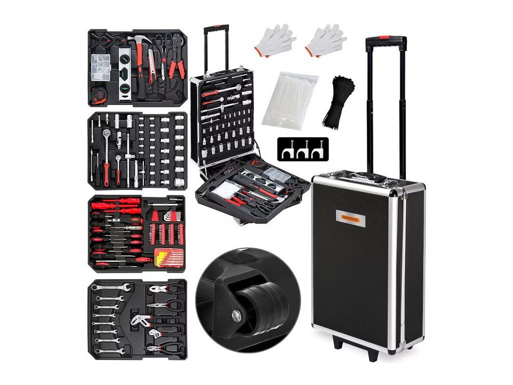 Toate instrumentele utile la îndemână într-o valiză practică. Carcasa de scule din aluminiu are tot ce are nevoie fiecare lucrător. Cu 899 de piese, aveți toate instrumentele rapid și convenabil la locul dumneavoastra. Patru sertare practice și detașabile vă permit să îndepărtați rapid și bine instrumentele. Datorită clemelor de pe partea inferioară a cutiei și a manetei telescopice detașabile practice, valiza este mobila și la fel de ușor de utilizat. Valiza este potrivită pentru utilizare în casă, în mașină sau pe bicicletă.