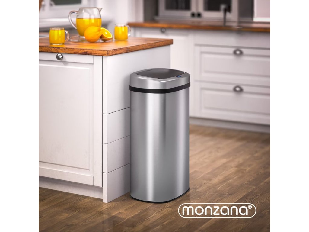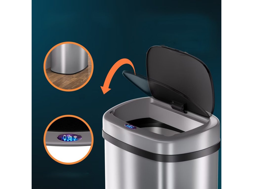 Coșul de gunoi se deschide automat cu mișcarea mâinii și după eliminarea deșeurilor, capacul se închide automat după 5 secunde. Datorită tehnologiei senzoriale rezistente la apă cu afișaj LED, coșul de gunoi cu un volum de 50 de litri este ideal pentru gospodărie, birou sau atelier. Coșul este fabricat din oțel inoxidabil de calitate. Pentru a nu perturba aspectul elegant cu sacii de gunoi proeminenți, un inel de prindere solid ține sacul de gunoi ferm pe loc. Un inel antiderapant pe partea de jos asigură o prindere fermă. Coșul de gunoi are un întrerupător, poate fi deschis și manual și este potrivit pentru saci de gunoi standard. Interiorul coșului de gunoi este complet închis, astfel încât compartimentul pentru baterii este protejat împotriva condensului. Cablul de alimentare USB pentru alimentare alternativă fără baterii poate fi operat cu un adaptor USB standard.Beneficiile produsului: