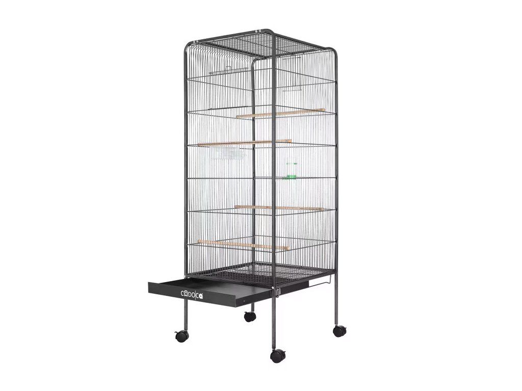 Cușca cu 2 uși și 4 bibani reglabili independent oferă mult spațiu pentru creșterea păsărilor. Datorită distanței mici dintre grilaje, este potrivită și pentru păsările mai mici. Cușca este echipată cu un bol pentru mâncare și un recipient pentru apă. Un sertar de nisip detașabil din partea de jos a cuștii permite curățarea ușoară. O grilă de podea deasupra sertarului asigură că colivia este închisă chiar și în timpul curățării. Cușca este montată pe 4 rotițe blocabile care facilitează deplasarea și poziționarea în siguranță.