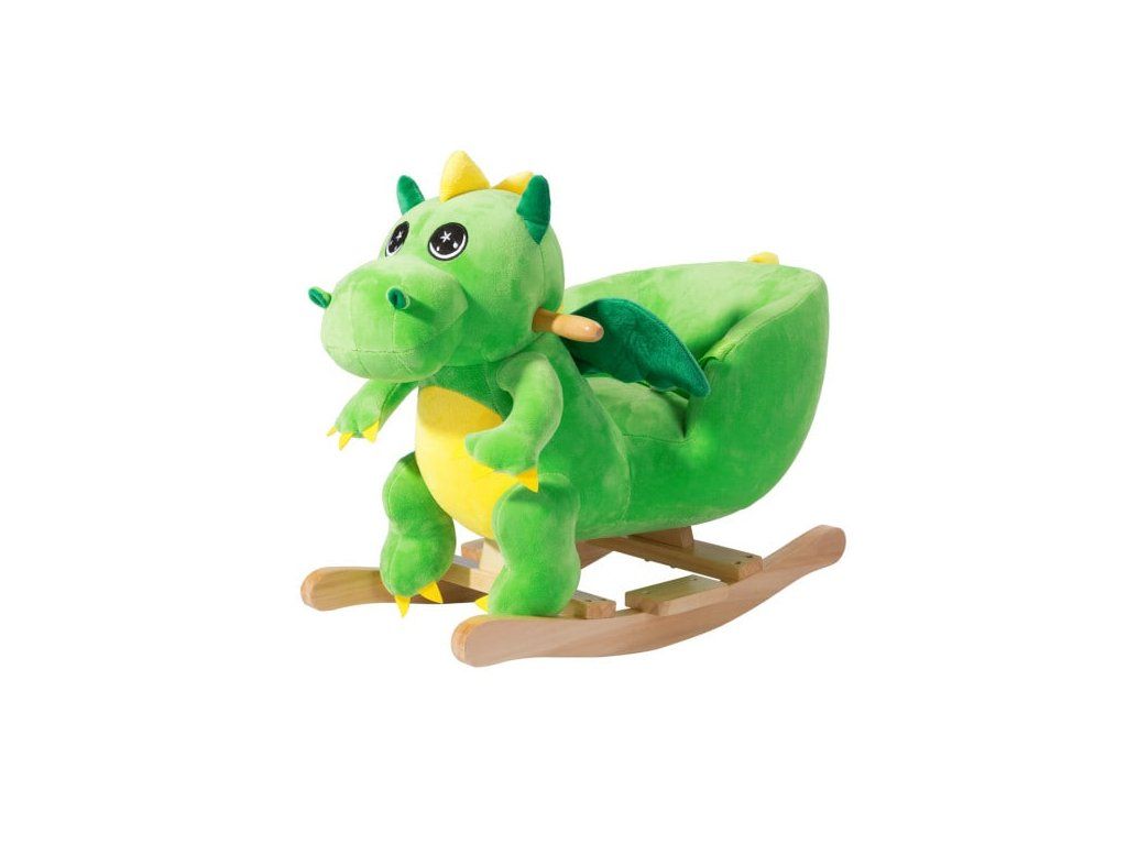 Dinozaurul din pluș moale are un cadru din lemn cu mânere din lemn, șezut din pluș moale și este echipat cu centură de siguranță. Când apăsați pe urechea dinozaurului, acesta emite amuzante sunete de dinozaur.