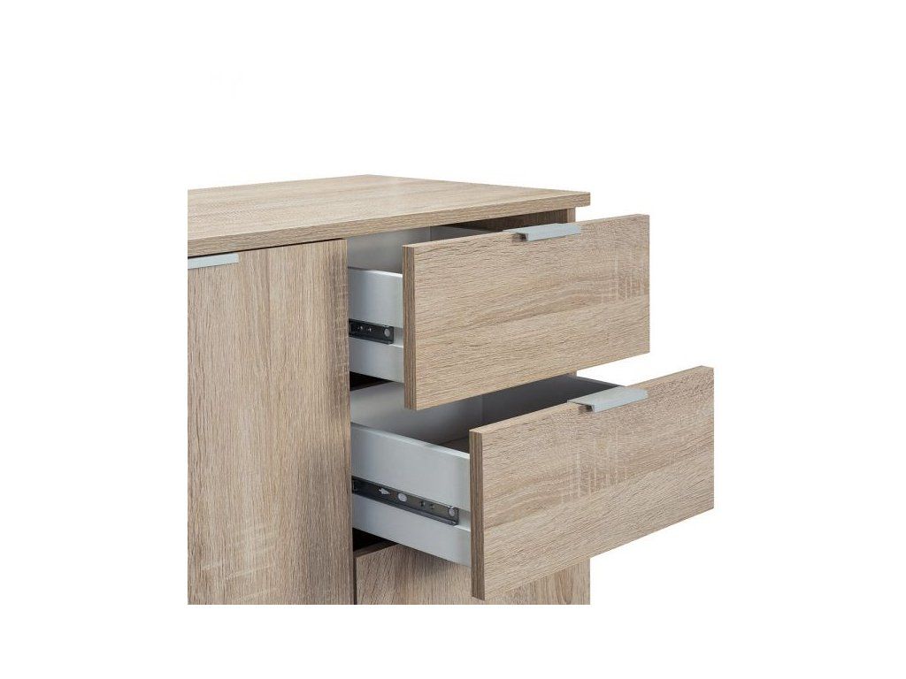 O piesă de mobilier bine gândită – funcționalitate ridicată și design modern! Comoda, cu aspectul său clasic și liniar, se potrivește perfect în orice locuință. Prelucrarea de înaltă calitate garantează o stabilitate excelentă și o rezistență ridicată. Spațiu generos de depozitare: