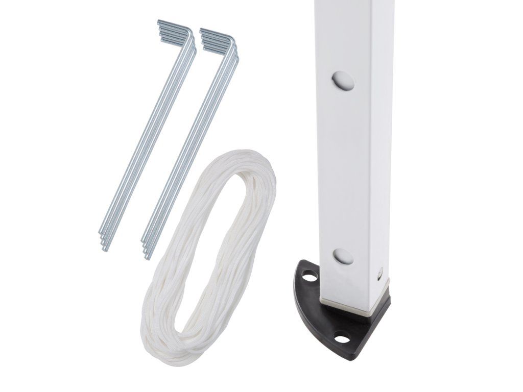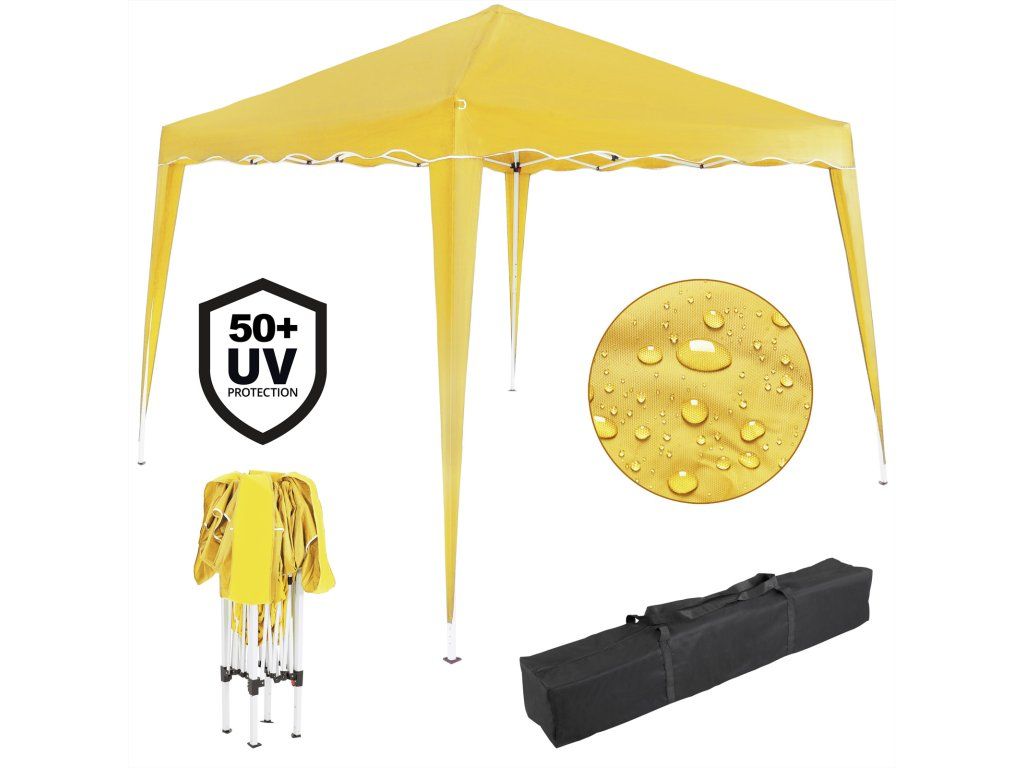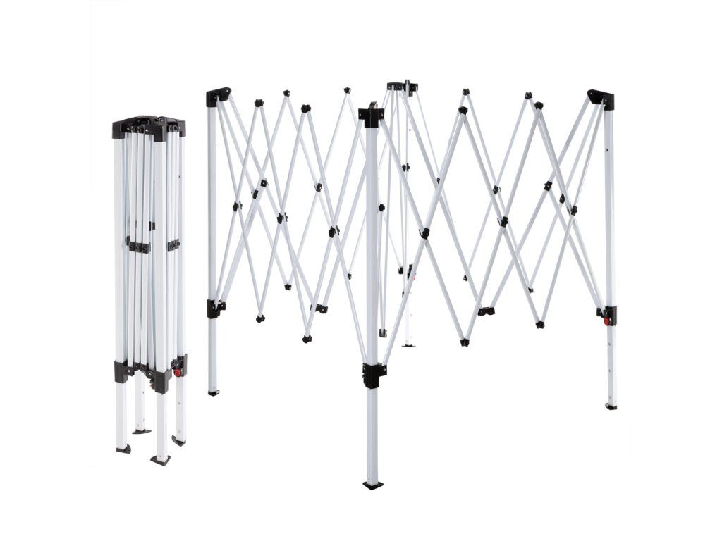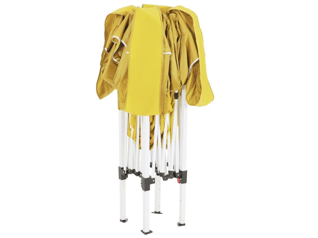 Datorită sistemului practic de pliere, foișorul poate fi complet pliat în câteva minute, doar pentru ocazii spontane. Stâlpii metalici și picioarele ancorabile conferă acestui foișor o stabilitate bună.