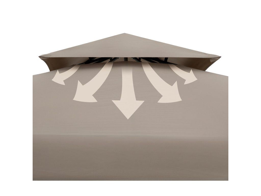 Deschiderea acoperișului asigură o circulație optimă a aerului în interiorul foișorului. Rama interioară este asamblată folosind conexiuni cu fișe sigure și cu 20 de pini, 4 frânghii de ancorare foișorul poate fi ancorat ferm în pământ.