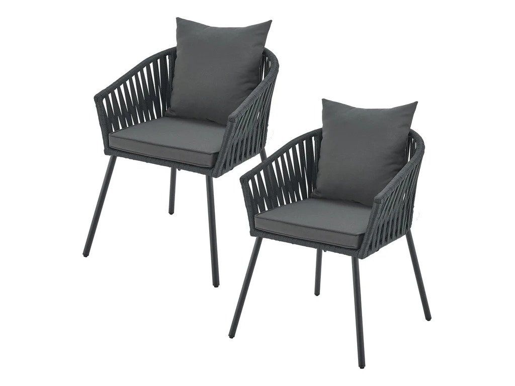 Fotoliile reprezintă o soluție elegantă și confortabilă pentru ședere atât la exterior, cât și la interior. Datorită designului modern cu împletitură din șnur, creează un element vizual atractiv pe terasă, balcon sau în grădina de iarnă. Combinația dintre construcția solidă și pernele moi asigură un confort ridicat la utilizarea zilnică.