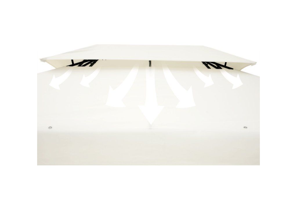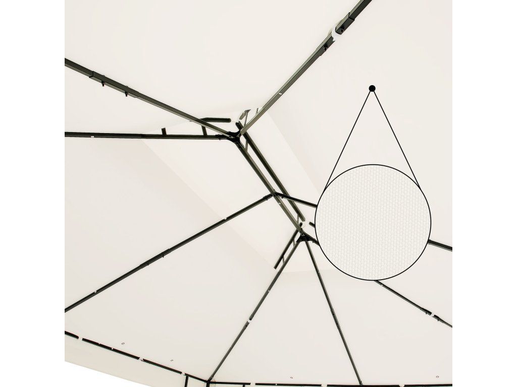 Acoperișul baldachinului cortului de petrecere asigură circulația optimă a aerului în interiorul cortului. Pavilionul este ancorat ferm în pământ cu 20 de țăruși și 4 frânghii de ancorare