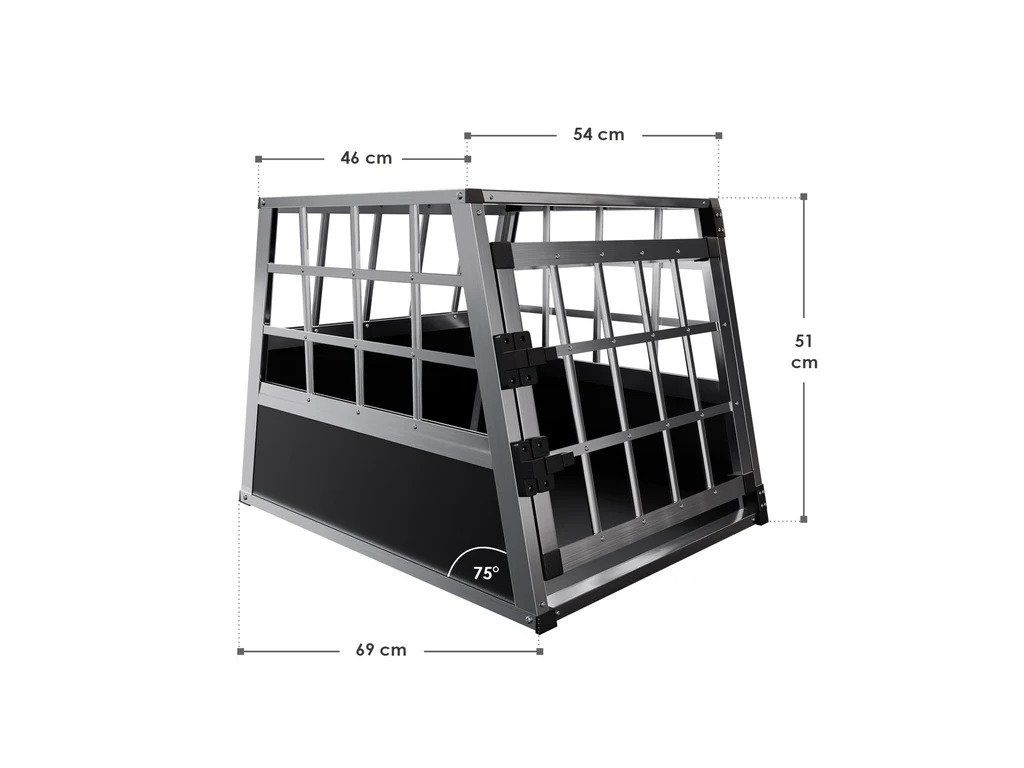 Cutie pentru manevrarea in siguranta a cainilor M. Cu cutie de aluminiu pentru caini M puteti manevra cainii mici confortabil si in siguranta. Puneți cutia în portbagaj sau atașați-o pe bancheta din spate a mașinii. Datorită structurii curente, cutia de transport se îndreaptă spre carcasă sau pe scaunul din spate a multor modele obișnuite. Are 51 cm înălțime, are o suprafață de 54 × 69 cm și poate fi atașat rapid la mașină. Petele din cutiile de plasă trebuie îndepărtate cu o cârpă umedă. Cutia de călătorie rezistentă la coroziune este fabricată din panouri din lemn MDF și fibre de aluminiu. Această combinație garantează stabilitate de primă clasă și durată lungă de viață. Datorită greutății sale reduse, este, de asemenea, ușor să o scoateți din portbagaj. Ușile pot fi blocate.