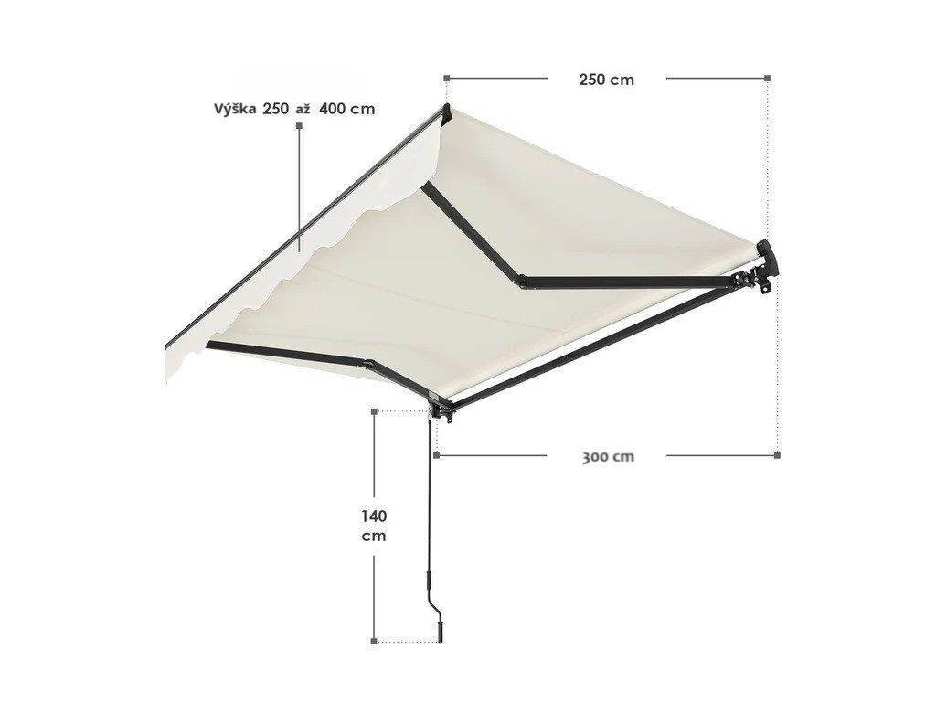 - Dimensiuni markiză (LxL): 300 x 250 cm; extensibilă până la 250 cm