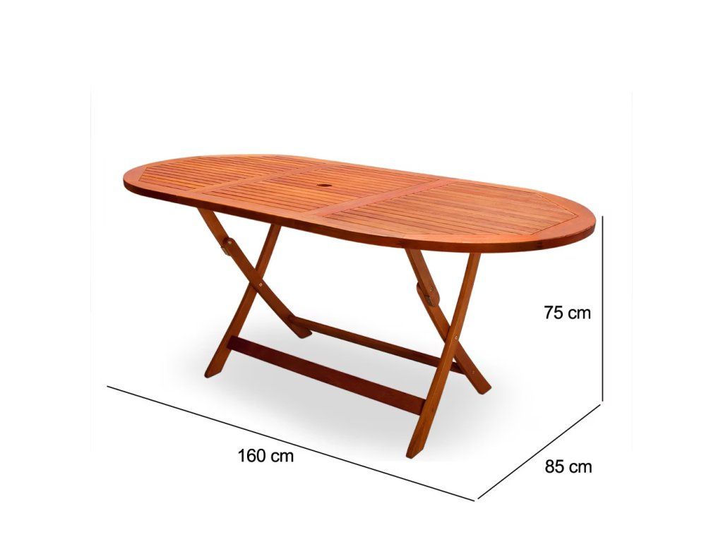 Această masă pliabilă elegantă este construită din lemn de salcâm dur, uleiat de calitate, remarcându-se prin rezistența la condițiile meteorologice. Masa de dining se pliază ușor, ceea ce facilitează depozitarea atunci când nu este folosită. Orificiul practic din mijlocul mesei este ideal pentru amplasarea unei umbrele de soare în zilele toride. Această masă va deveni un element decorativ pentru grădina, terasa sau balconul dumneavoastră. Lemnul de salcâm, ca material natural, reacționează la factori externi precum aerul, umiditatea și temperatura, ceea ce poate duce la modificări ale culorii sale. Pentru curățare, este suficient să folosiți o cârpă umedă. Pentru a menține culoarea intensă și rezistența, recomandăm aplicarea regulată a unui ulei special destinat mobilierului de grădină.