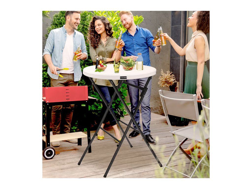Masa de bar cu o placă de plastic rezistentă și o construcție metalică stabilă este soluția ideală pentru petreceri în grădină, zile de naștere, nunți sau diverse evenimente sociale. Placa extra groasă oferă suficient spațiu pentru a sta confortabil și pentru a depozita practic băuturi sau mâncăruri. În câțiva pași simpli, masa poate fi rapid pliată sau desfășurată și depozitată astfel încât să economisești spațiu. Protectoarele integrate pentru podea pe picioare previn zgârieturile nedorite, ceea ce face ca masa să fie potrivită pentru utilizare în aer liber și în interior. Construcția robustă cu 4 picioare previne răsturnarea și face ca masa de bar să fie deosebit de stabilă.Beneficiile produsului: