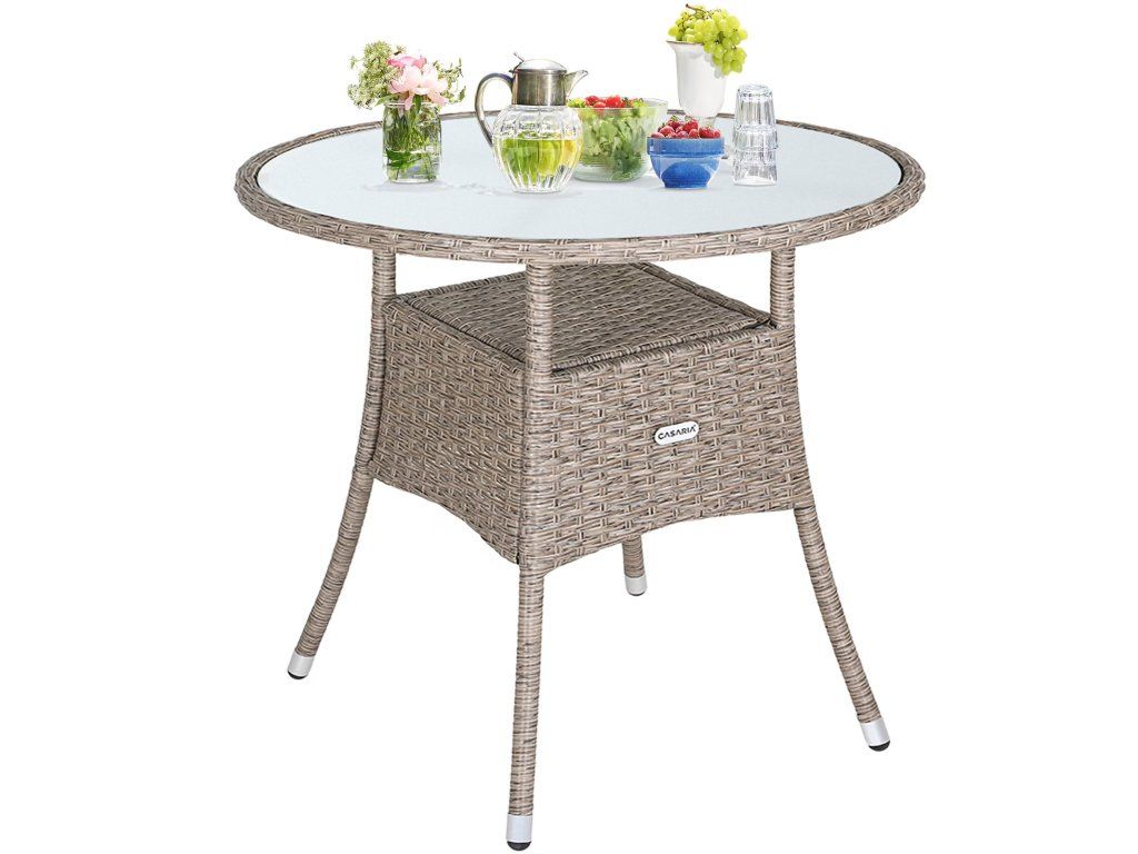 Masă degrădină din poliuretan în aspectul natural ne va ieși în evidență atât în interior, cât și în exterior. Masa este echipată cu o placă de sticlă de înaltă calitate cu sticlă mată și oferă mult spațiu și este ușor de curățat. Sub masa de masă există un spațiu de depozitare unde puteți stoca reviste, cărți și altele asemenea. Masa este confecționată din poli-ratan, rezistentă la