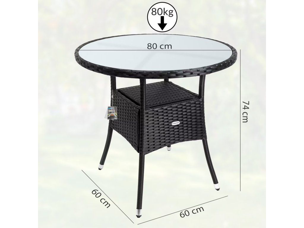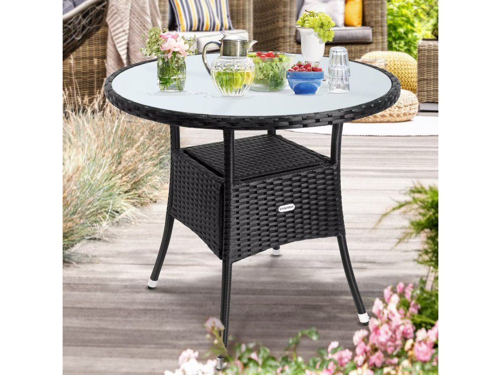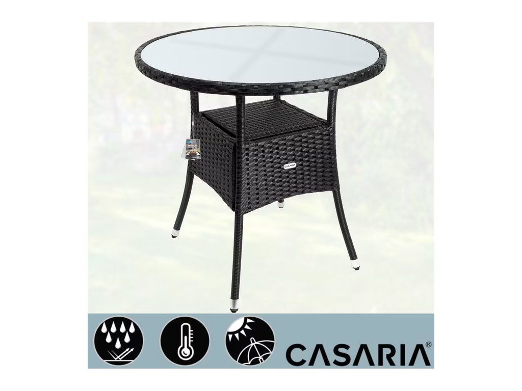 Masa este realizată din poli-ratan, rezistentă la razele UV - vă veți bucura de ea mult timp.