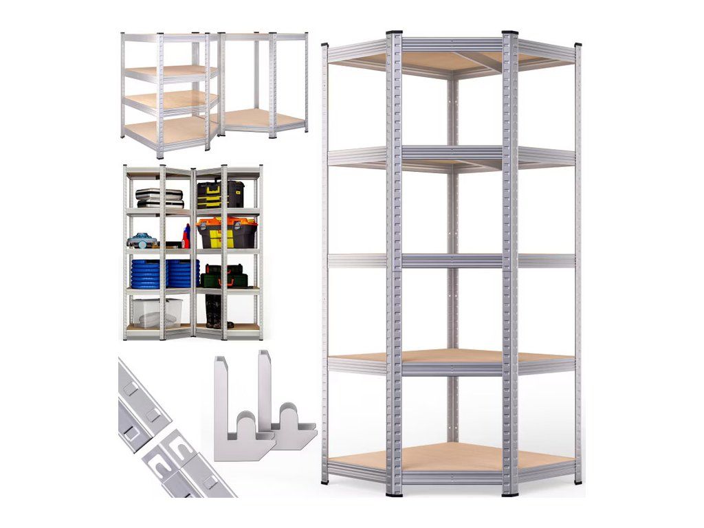 Regál oferă, de asemenea, un spațiu de relaxare pentru echipamente, articole de toaletă și alte lucruri de neuitat. Datorită formei sale, veți folosi astfel de colțuri în spațiu. Raftul de depozitare este fabricat din oțel zincat de înaltă calitate. Vzpěry polic asigură o stabilitate ridicată. Rack-ul are o capacitate totală de încărcare de 875 kg. Protecțiile picioarelor din cauciuc împiedică zgârieturile pe podele și tavane. Rafturile sunt realizate din material MDF cu o grosime de 5 mm. Datorită sistemului de cadre plug-in, puteți determina individual înălțimea raftului și astfel puteți alege raftul așa cum vi se