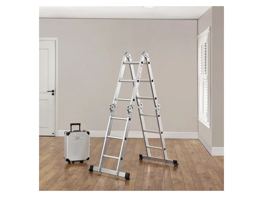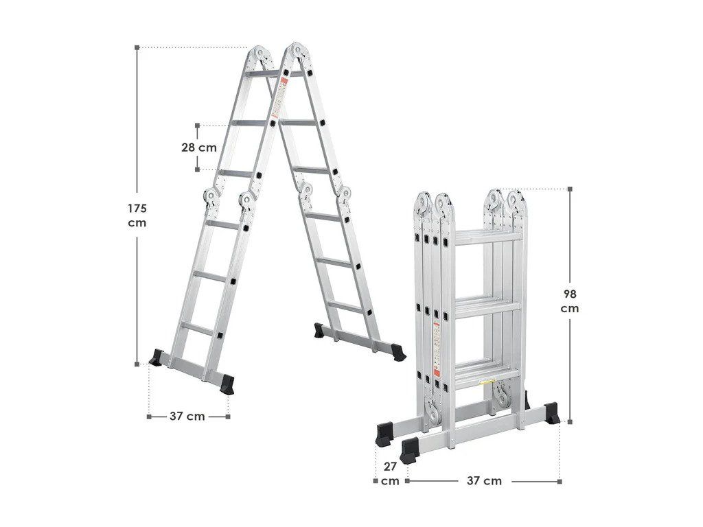 Indiferent dacă aveți nevoie să tăiați gardul viu, să pictați un perete sau să atașați o lampă, această scară este un ajutor indispensabil în gospodărie și grădină. Este făcută din aluminiu ușor, poate fi rapid și ușor de pliat la dimensiuni compacte, astfel încât să o puteți transporta și depozita cu ușurință. Un sistem sofisticat de articulații cu blocare conferă structurii rezistență și fiabilitate și cu șase articulații împarte scara în patru elemente, fiecare cu trei trepte. O puteți folosi ca scară înclinată sau clasică, atingând la extindere maximă înălțimea de 360 de centimetri. Datorită capacității de încărcare de până la 150 kg, picioarele cauciucate și treptele largi cu suprafață antiderapantă oferă stabilitate și siguranță maximă.Specificații tehnice: