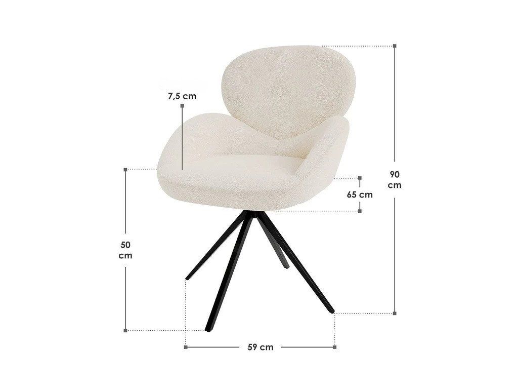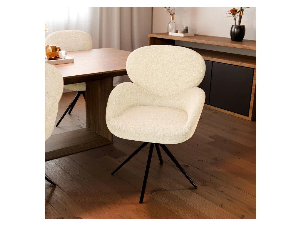 Acest scaun de luat masa cu tapițerie moale cu funcția de rotație de 360°, picioare reglabile și design crem combină funcționalitatea cu stilul și este ideal pentru sala de mese, bucătărie sau living. Husa texturată din buclé este confortabilă la atingere, rezistentă și conferă scaunului un aspect elegant și modern. Datorită picioarelor reglabile, scaunul stă stabil chiar și pe o suprafață ușor neregulată, fiind astfel ideal pentru gresie sau parchet.Specificații tehnice: