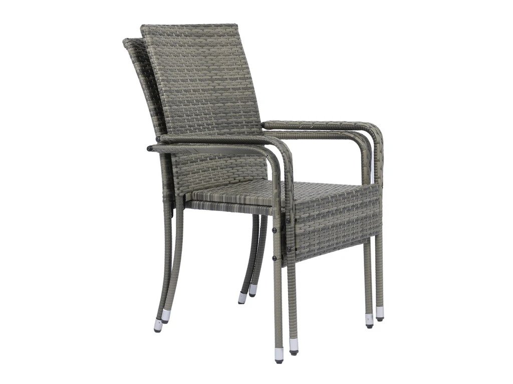 Setul de 2 scaune de grădină din poliratan este stivuibil și echipat cu brațe. În culoarea elegantă neagră, sunt un complement perfect pentru terasa, balconul sau grădina dvs. Construcția scaunelor este realizată din oțel robust cu vopsea pulbere, ideal pentru utilizare în aer liber. Pentru a compensa neregularitățile, înălțimea picioarelor din față este reglabilă. Datorită poliratanului elastic, scaunele sunt deosebit de confortabile, chiar și fără perne. Fiecare scaun are o capacitate de până la 160 kg, dar totuși este foarte ușor. Scaunele de grădină moderne pot fi stivuite simplu după sezonul de vară, economisind spațiu și fiind pregătite pentru vara următoare.