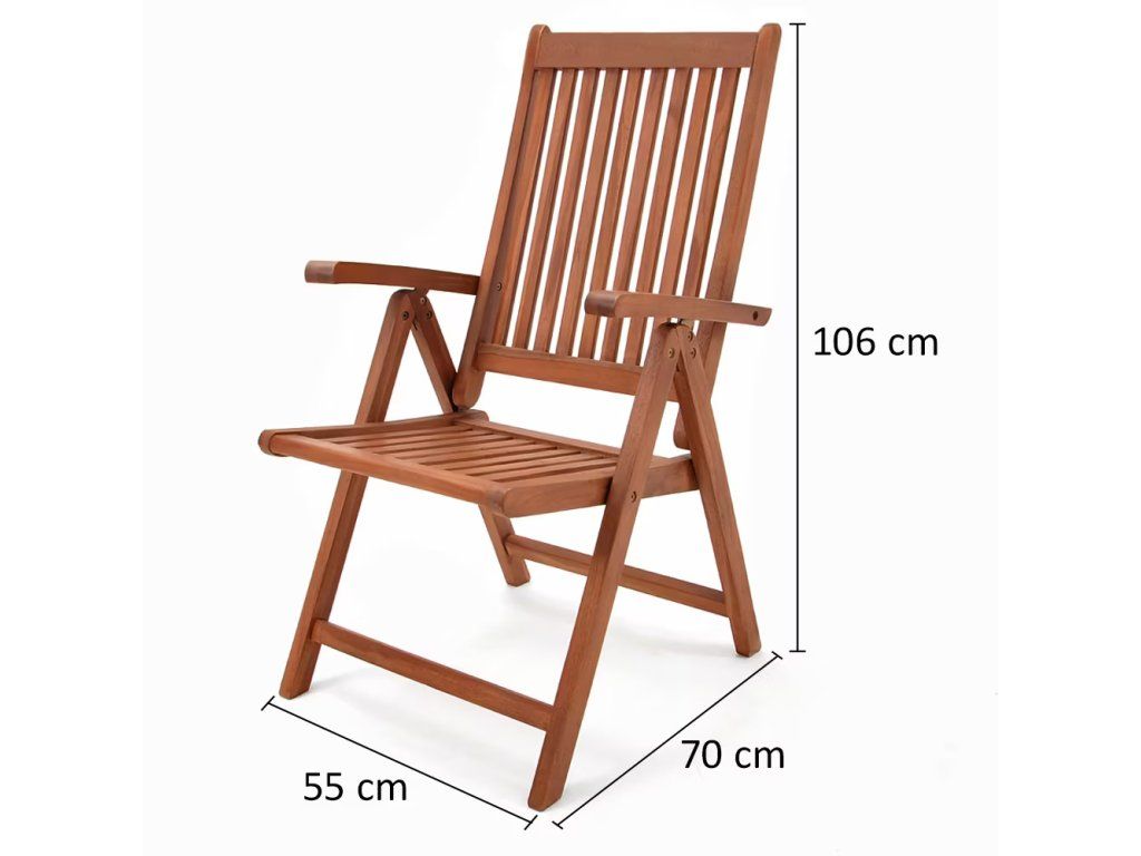 Setul din lemn este ideal pentru grădină, terasă și balcon. După utilizare, masa și scaunul sunt ușor de pliat și depozitat pentru a economisi spațiu. Zidlí de sprijin în formă ergonomică oferă un confort ridicat. Scaunele sunt reglabile pe cinci laturi diferite, astfel încât să puteți sta confortabil și confortabil. Setul este realizat dintr-o combinație de 2 tipuri diferite de lemn, astfel încât culoarea setului poate fi lustruită.