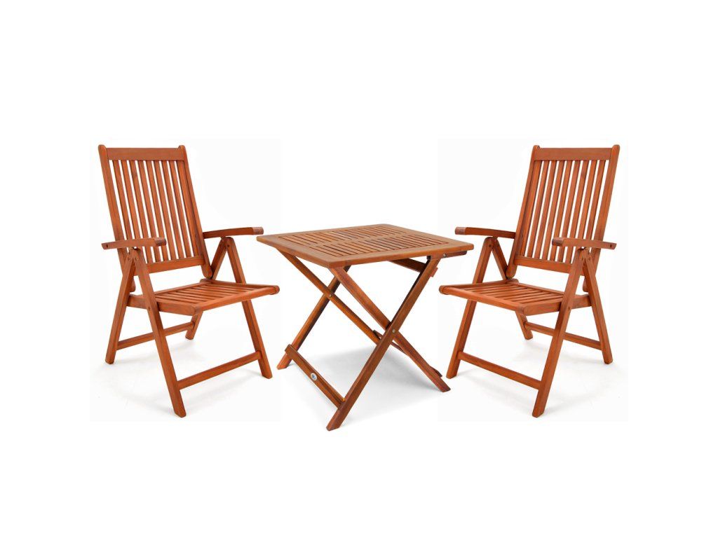 Setul de balcon include două scaune și o masă pliabilă din lemn