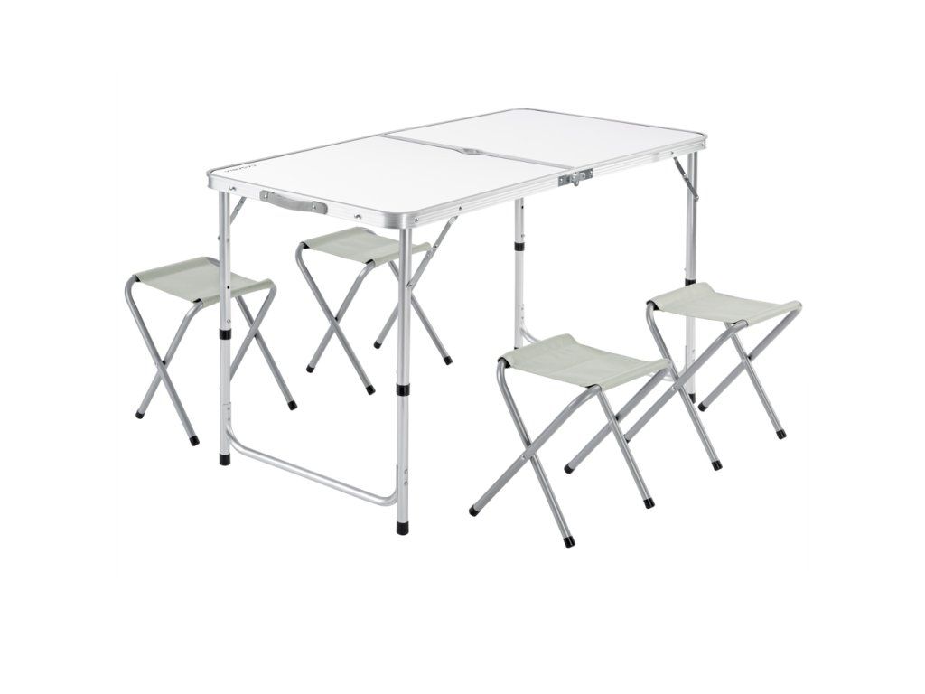 Acest set de camping este ideal ca masă sau spațiu practic de depozitare. Datorită versatilității sale, este perfect pentru casă, grădină sau camping – o alegere mereu de încredere. Cu greutate redusă, design pliabil și mâner practic pentru transport, este ușor de transportat și încape comod aproape în orice portbagaj. Masa de camping oferă posibilitatea de reglare pe trei înălțimi – 55 cm, 62 cm și 70 cm. Pur și simplu alegeți înălțimea care vi se potrivește cel mai bine. Setul include și patru scaune de camping pliabile. Aceste scaune pot fi depozitate cu ușurință în masa pliată, ceea ce permite transport facil și depozitare practică.