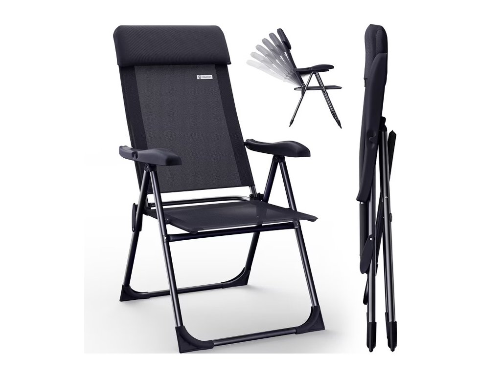 Scaunele de camping într-un pachet practic de 2 bucăți sunt partenerul ideal pentru camping, pescuit, pe plajă sau în grădină. Spătarul reglabil se adaptează frumos la poziția de ședere corespunzătoare, perna extra moale, detașabilă pentru cap relaxează zona gâtului și mânerele ergonomic curbat fac scaunul și mai confortabil. Binoclul sau sticla de apă pot fi agățate pe cârligul de lângă cotieră. Husa textilă din poliester este respirabilă, rezistentă la apă și lavabilă. Cadru ușor de aluminiu poate fi pliat în câteva secunde și scaunul poate fi transportat cu ușurință.Beneficiile produsului:
