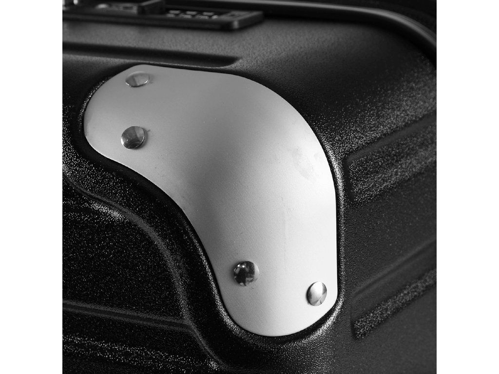 Fiecare troler este fabricat dintr-o combinație de plastic ABS și PC, care asigură rezistență și durabilitate la șocuri. Elementul de protecție din aluminiu de pe margini oferă bagajului o stabilitate sporită și protejează împotriva deteriorărilor în timpul manipulării pe parcursul călătoriilor. Dungile verticale moderne completează aspectul elegant al trolerelor.