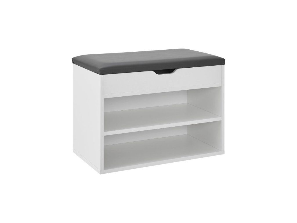 Butonul oferă, de asemenea, pliabil pe pantofi sau alte obiecte datorită celor două deschideri și a accesoriilor. În spațiul de economisire a spațiului sub scaun, obiectele mici pot fi depozitate ca perii și creme pentru cizme, încălțăminte și altele asemenea. Suportul pentru pantofi combină depozitarea practică cu scaunele confortabile. Cu o capacitate de încărcare de până la 150 kg, poate fi folosit ca bancă pentru sezon pentru curățarea și curățarea cizmelor. Datorită dimensiunii sale de 60x30 cm, este potrivit pentru orice loc în hol sau în bucătărie ca spațiu de depozitare. Suportul pentru încălțăminte are un strat de melamină deasupra. Datorită acestui fapt, materialul este foarte sensibil, iar suprafața mată este rezistentă la