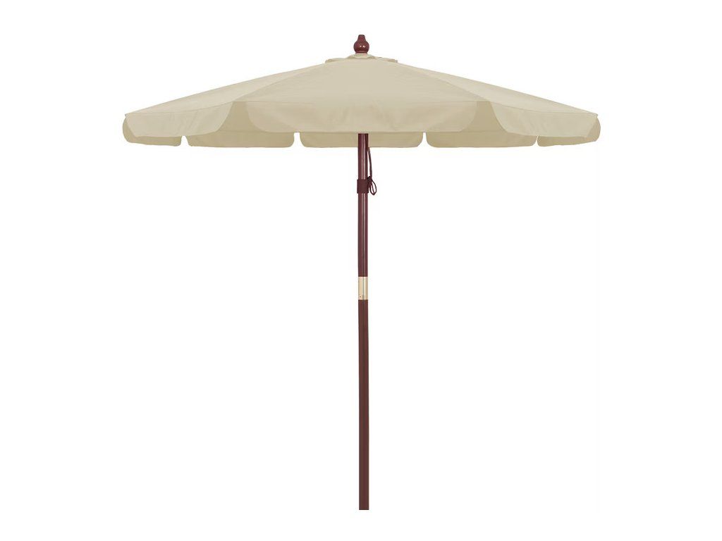 Datorită protecției UV 80+ sunteți perfect protejați de soare. Husa umbrelei este fabricată din material rezistent la apă. Tija umbrelei cu o grosime de 48 mm este fabricată din lemn autentic și poate fi împărțită în două părți, ceea ce este ideal pentru depozitare sau transport. Umbrela are un orificiu pentru vânt, care asigură stabilitatea, permite vântului care vine de jos să scape în sus și previne acumularea de căldură sub umbră. Umbrela poate fi deschisă și închisă rapid și ușor cu ajutorul unui sistem de scripete cu funcționare lină.