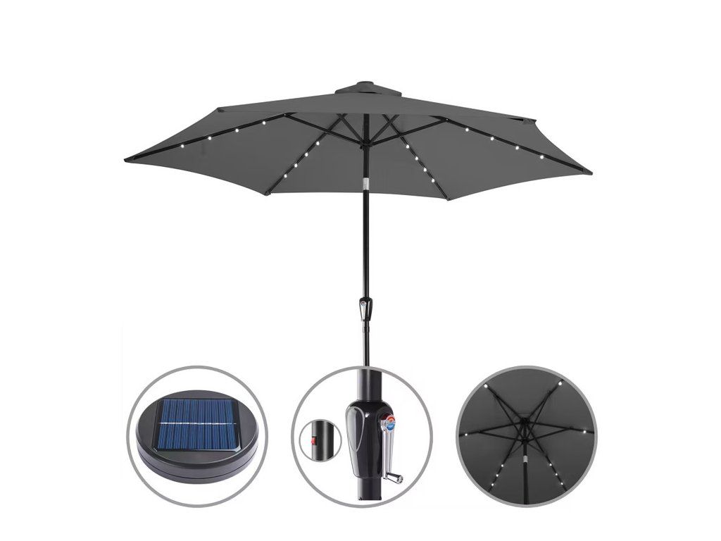 - 1 x umbrelă de soare cu iluminare LED integrată + panou solar